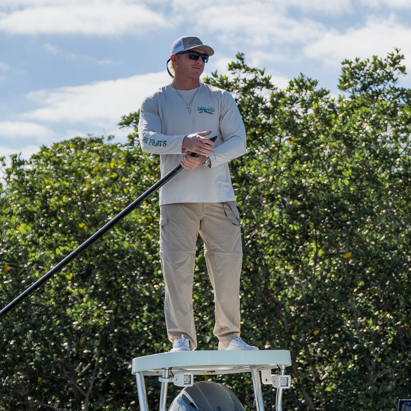 Our founder, Tyler Ostheim, has always been driven by his passion for art and his love for Florida’s waters. Growing up fishing the state’s unique ecosystems, he found inspiration in the vibrant landscapes and wildlife, channeling it into his hand-drawn designs. In 2015, Tyler combined his artistic vision with a mission to protect the waterways he cherishes, creating Snagged Apparel. Today, every piece of apparel reflects his dedication to celebrating the fishing lifestyle while supporting conservation efforts to preserve Florida’s natural beauty for future generations.