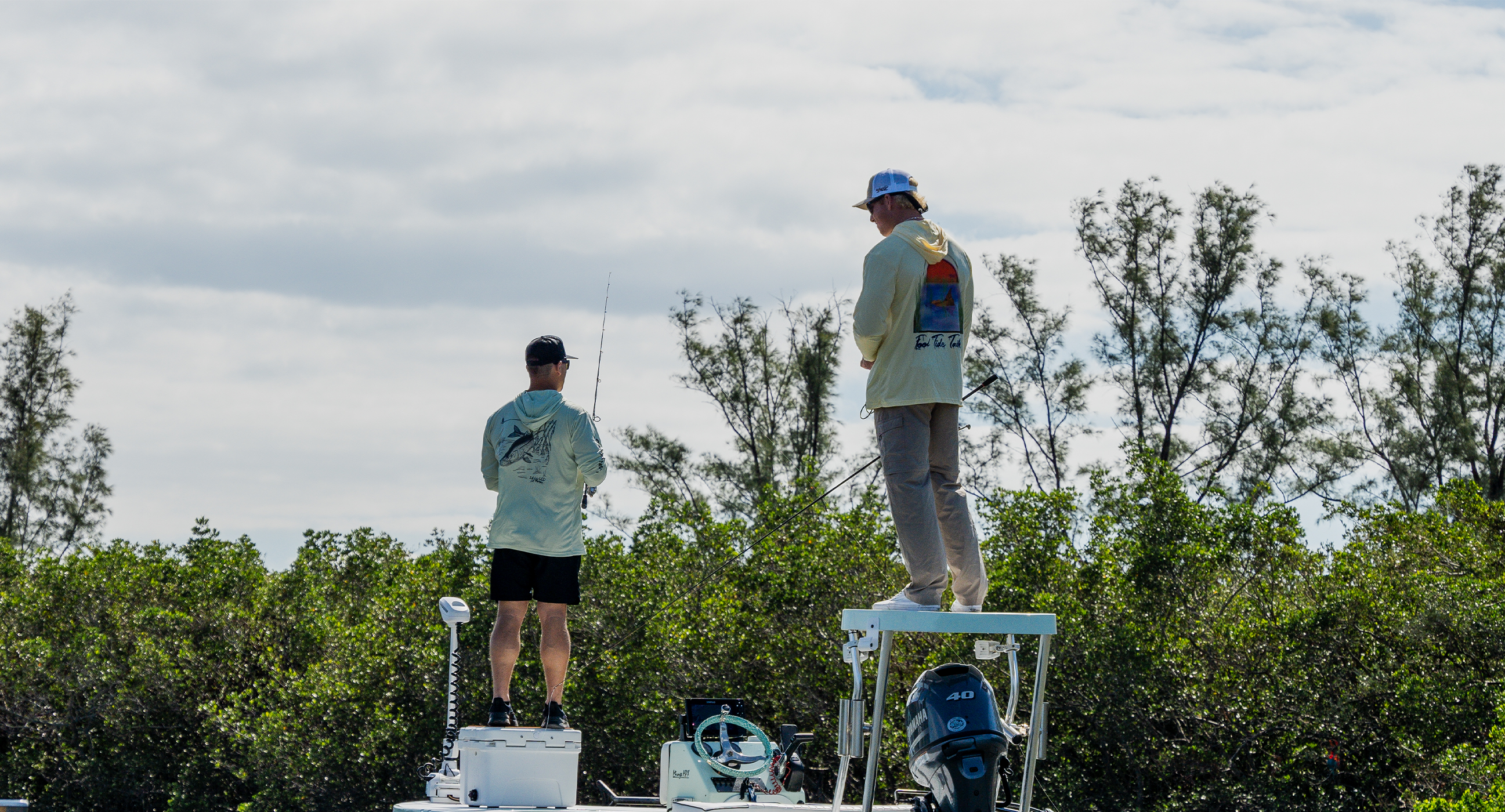 The Flood Tide Tailers shirt celebrates the beauty of redfish tailing in shallow waters during high tides. Designed with vibrant artwork and made from moisture-wicking, UPF 50+ fabric, this shirt is perfect for anglers who live for the magic of flood tide fishing.